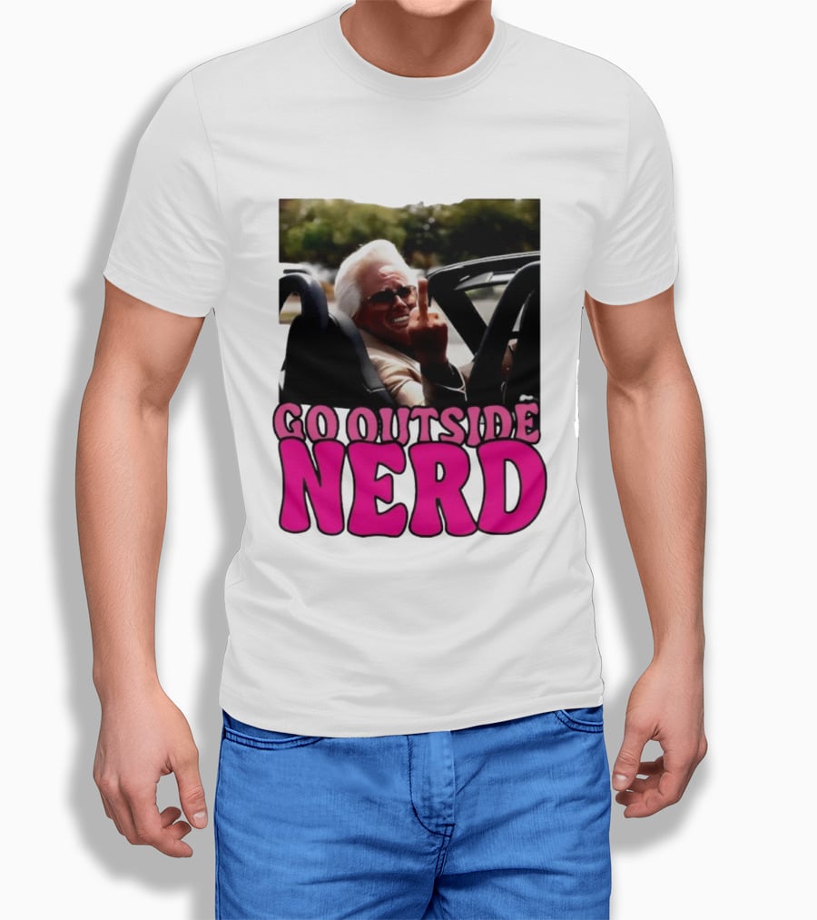 Go Outside Nerd Meme Middle Finger Convertible Image T-Shirt