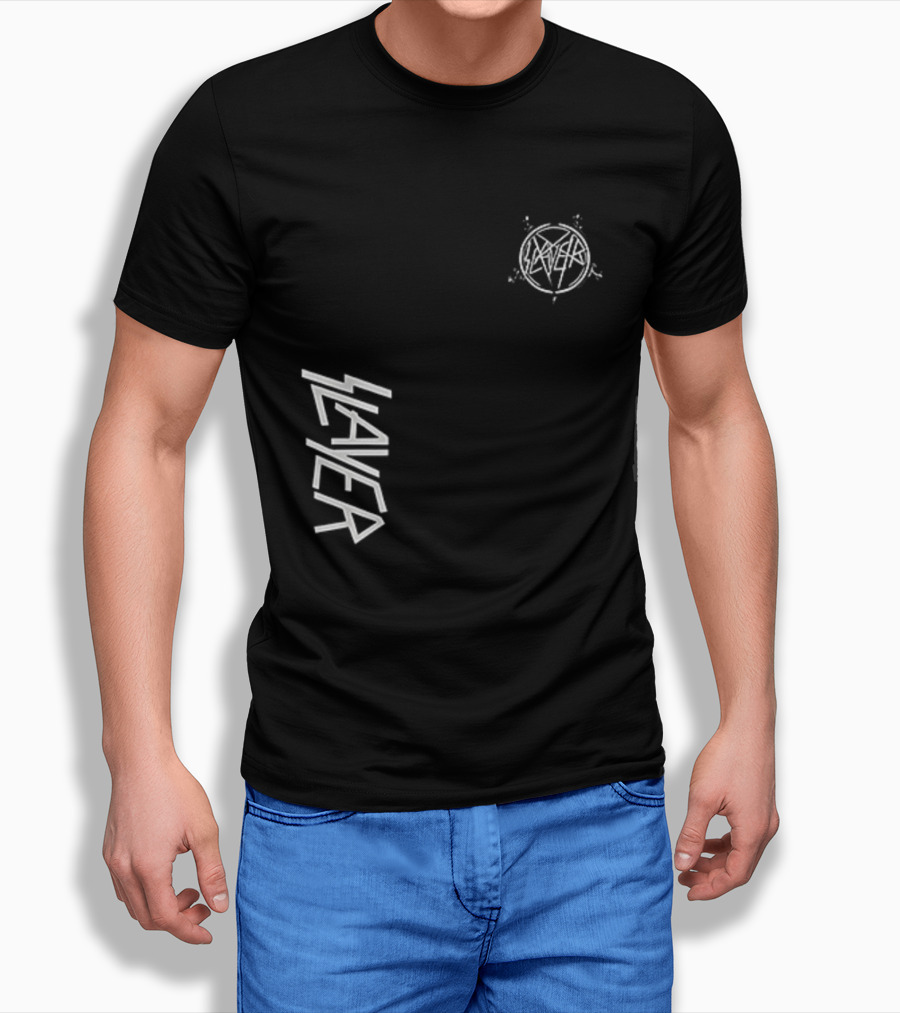 This T-Shirt features Slayer Angel of Death Skull Pentagram print and is constructed from 100% ring-spun cotton fabric with a weight of 4.19 oz/yd² (142 g/m²). The fabric is pre-shrunk during manufacturing, a process intended to minimize dimensional changes after washing according to standard care instructions. Designed with a regular fit for everyday use, it incorporates double-needle stitching at key seams. Please refer to the size chart for detailed measurements.