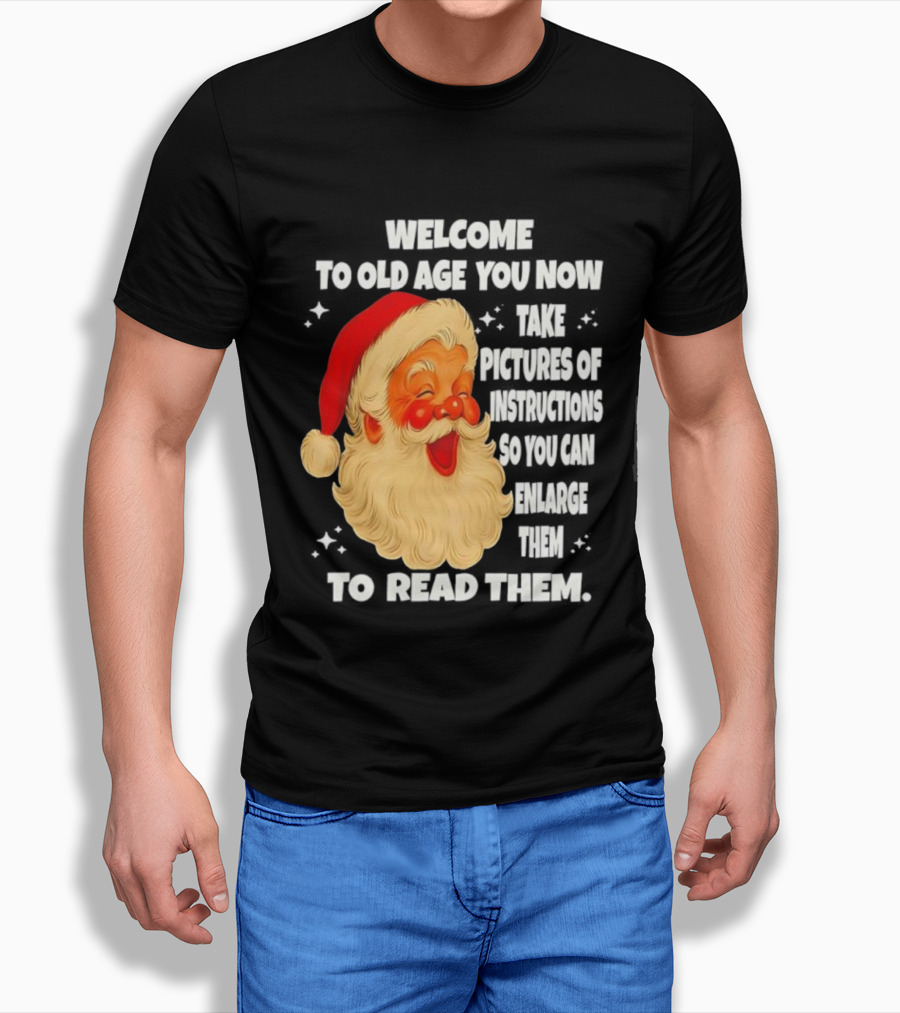 Welcome To Old Age You Now Take Pictures Of Instructions So You Can Enlarge Them To Read Them Santa Claus T-Shirt