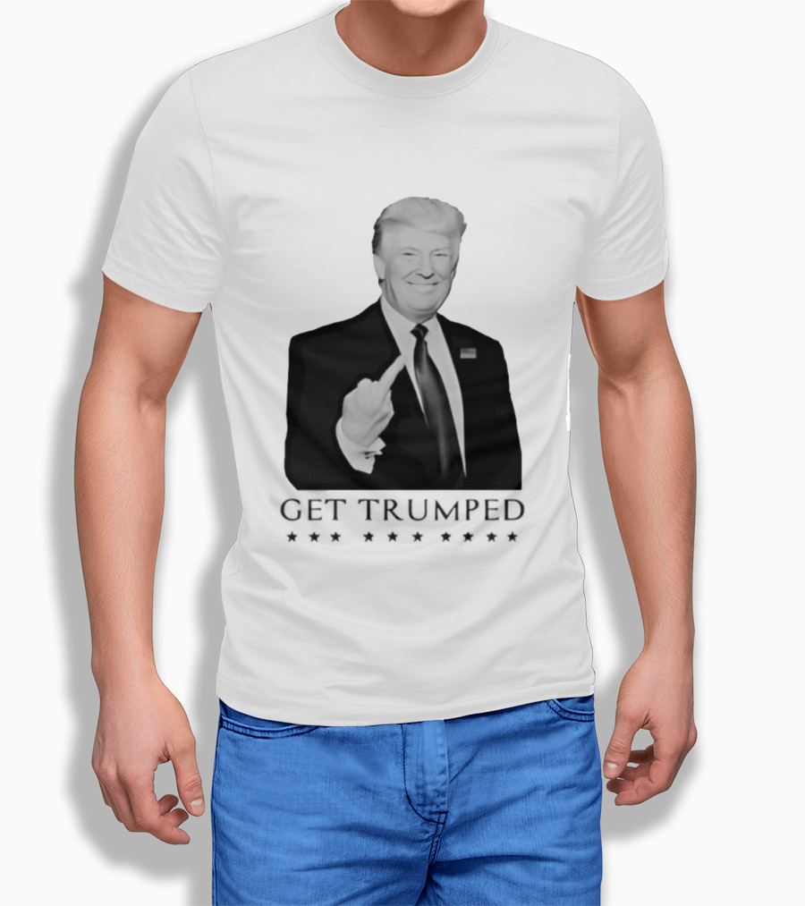 This T-Shirt features Trump Birdie Get Trumped print and is constructed from 100% ring-spun cotton fabric with a weight of 4.19 oz/yd² (142 g/m²). The fabric is pre-shrunk during manufacturing, a process intended to minimize dimensional changes after washing according to standard care instructions. Designed with a regular fit for everyday use, it incorporates double-needle stitching at key seams. Please refer to the size chart for detailed measurements.