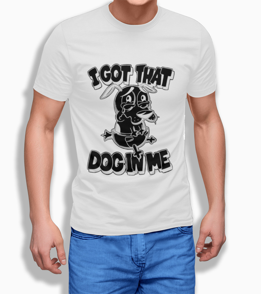This T-Shirt features I Got That Dog in Me Crying Dog Cartoon print and is constructed from 100% ring-spun cotton fabric with a weight of 4.19 oz/yd² (142 g/m²). The fabric is pre-shrunk during manufacturing, a process intended to minimize dimensional changes after washing according to standard care instructions. Designed with a regular fit for everyday use, it incorporates double-needle stitching at key seams. Please refer to the size chart for detailed measurements.