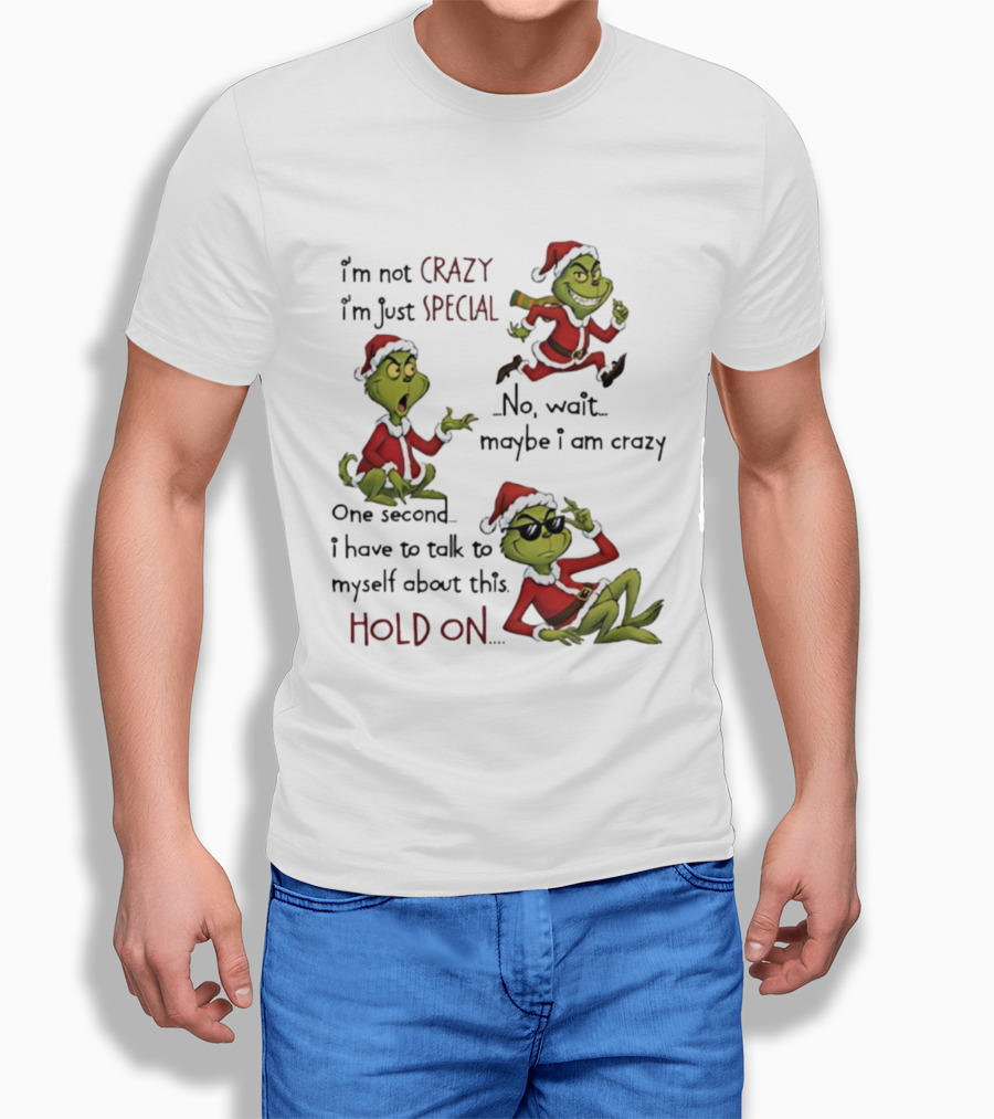 I'm Not Crazy I'm Just Special Grinch Christmas No Wait Maybe I Am Crazy Hold On T-Shirt