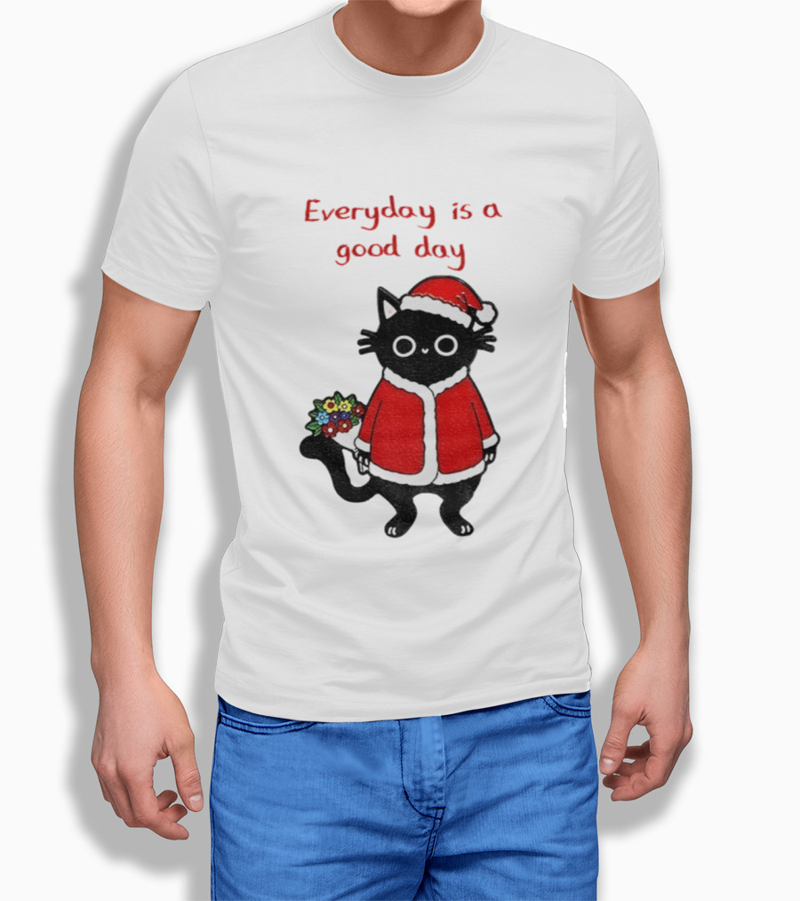 Everyday Is A Good Day Black Cat Santa Merry Christmas T-Shirt