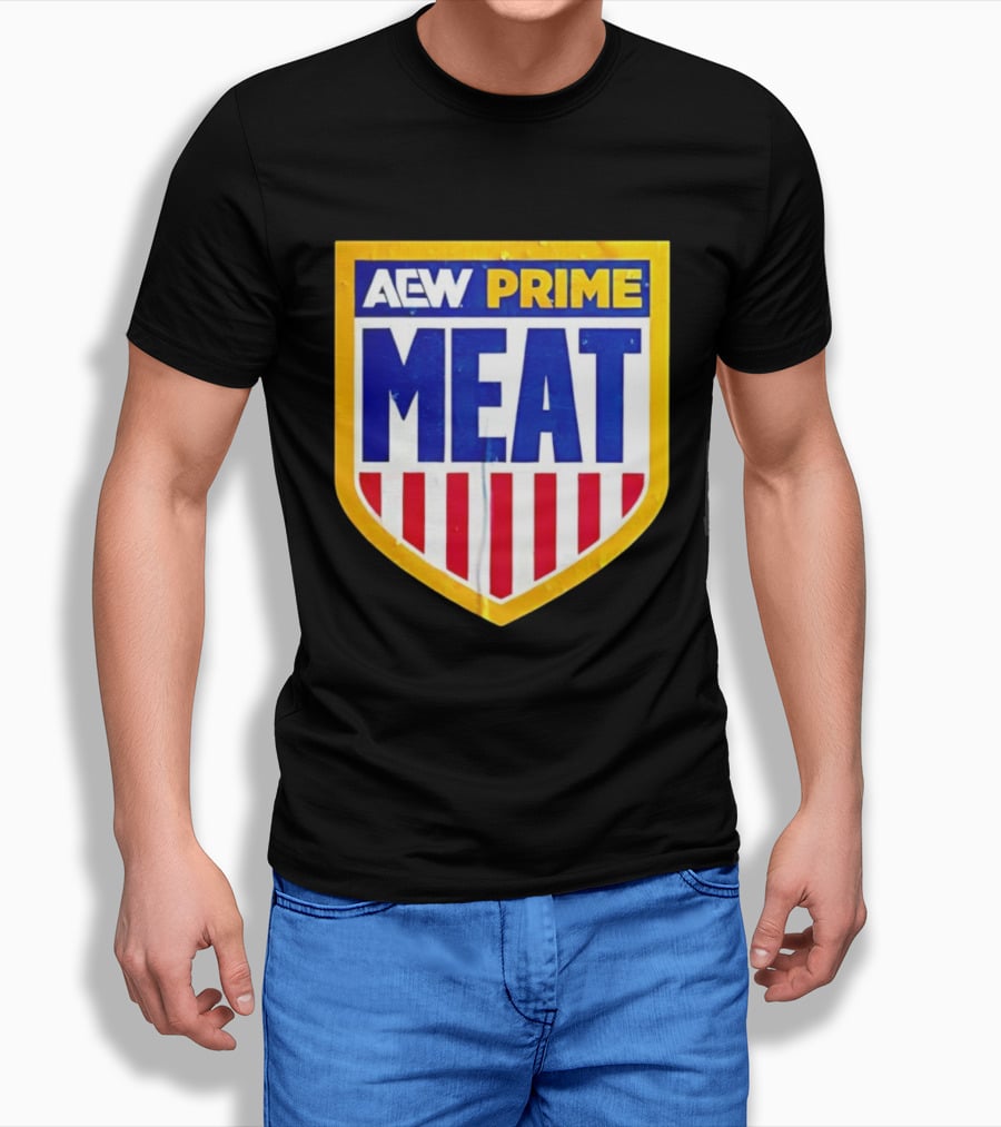AEW Prime Meat Shield Bold Lettering And Stripes T-Shirt