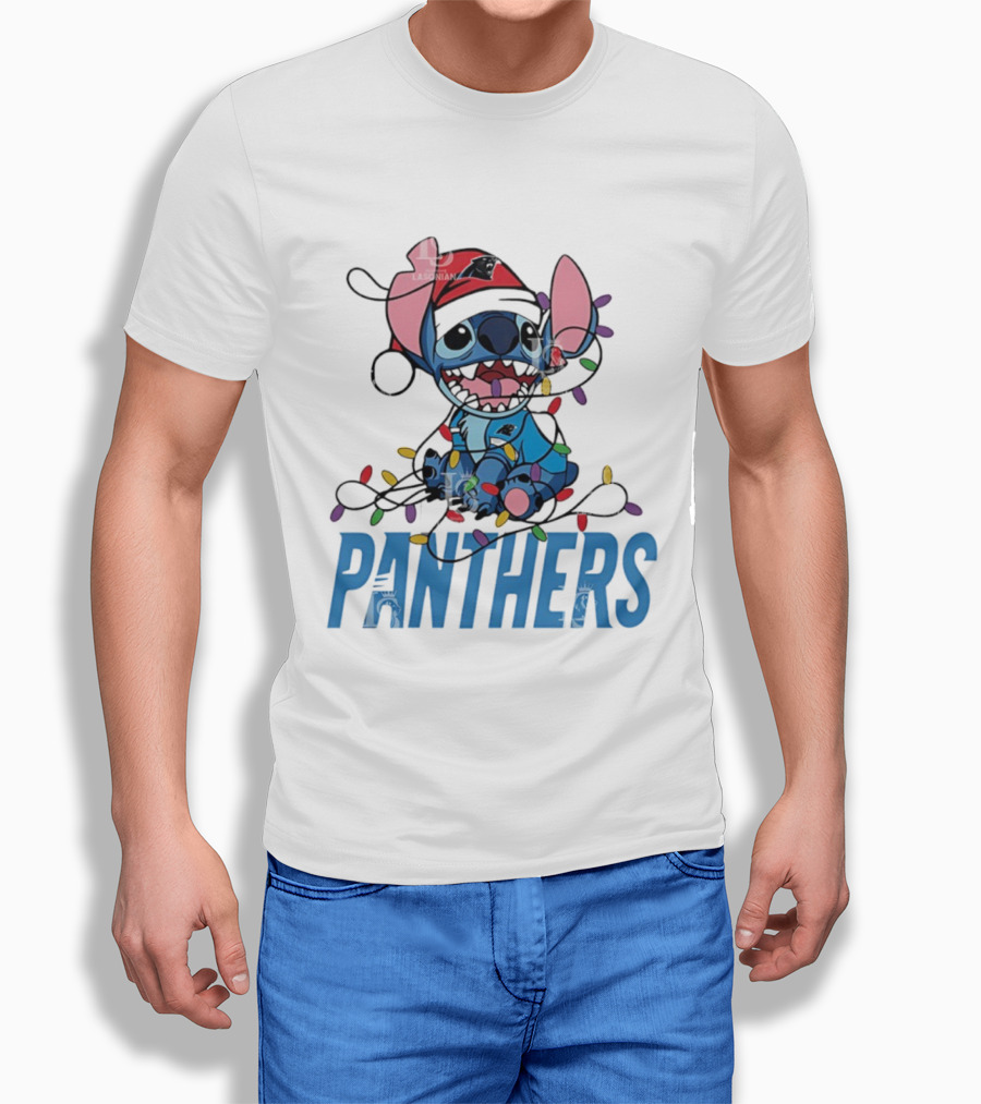 Carolina Panthers Stitch Christmas Lights Ornament T-Shirt