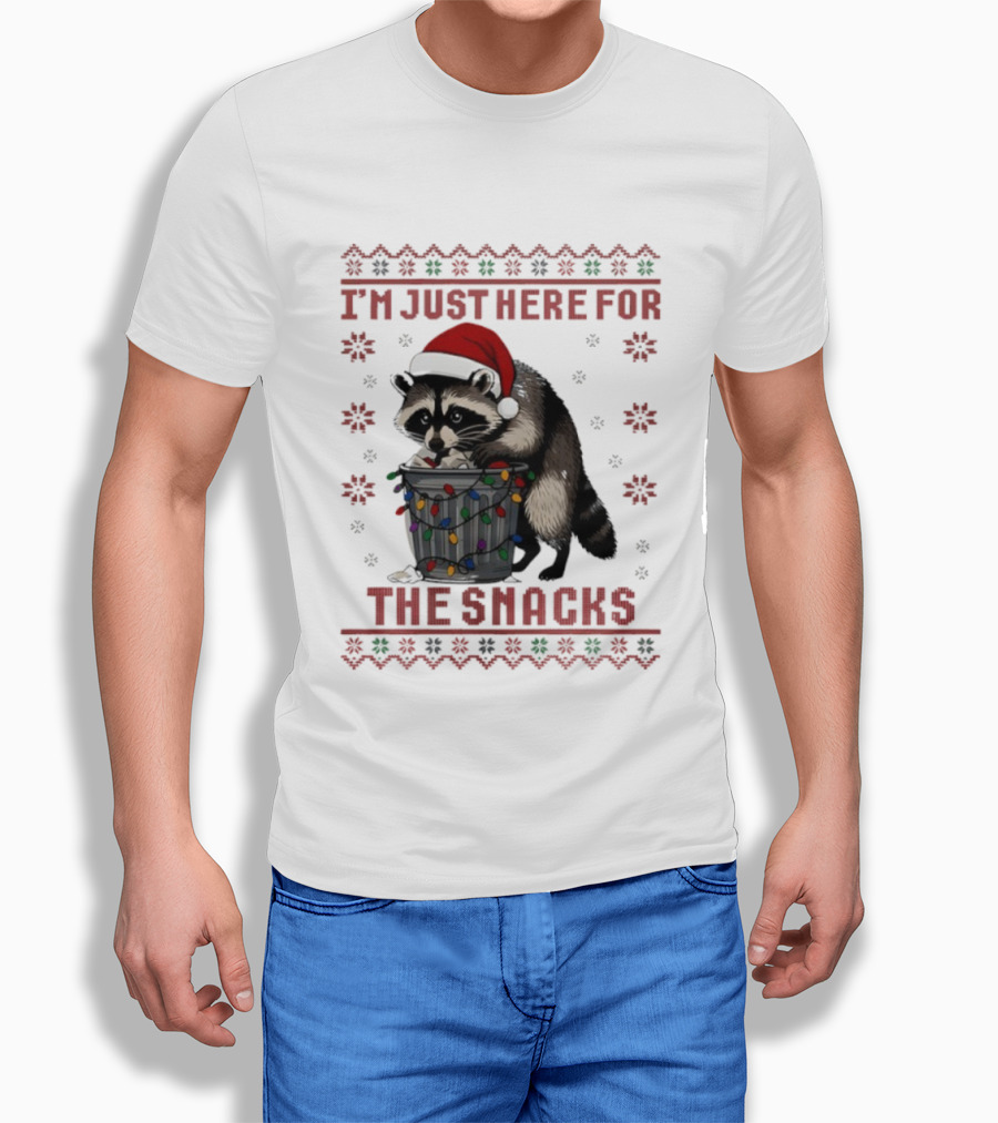 This T-Shirt features Raccoon in Santa Hat with Trash Can Lights I'm Just Here for the Snacks print and is constructed from 100% ring-spun cotton fabric with a weight of 4.19 oz/yd² (142 g/m²). The fabric is pre-shrunk during manufacturing, a process intended to minimize dimensional changes after washing according to standard care instructions. Designed with a regular fit for everyday use, it incorporates double-needle stitching at key seams. Please refer to the size chart for detailed measurements.