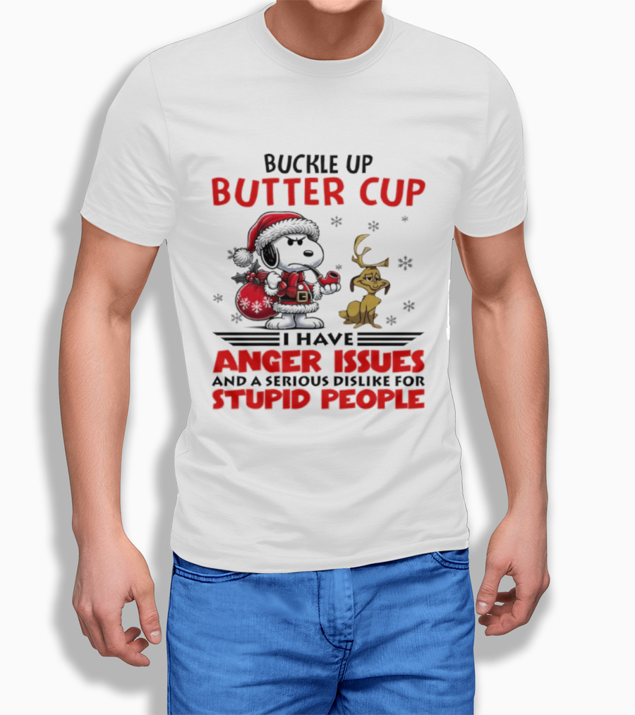 Buckle Up Buttercup Anger Issues Serious Dislike Stupid People Snoopy Reindeer T-Shirt