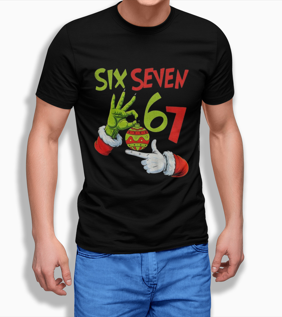 This T-Shirt features Six Seven 67 Grinch Christmas Bauble Merry Christmas print and is constructed from 100% ring-spun cotton fabric with a weight of 4.19 oz/yd² (142 g/m²). The fabric is pre-shrunk during manufacturing, a process intended to minimize dimensional changes after washing according to standard care instructions. Designed with a regular fit for everyday use, it incorporates double-needle stitching at key seams. Please refer to the size chart for detailed measurements.