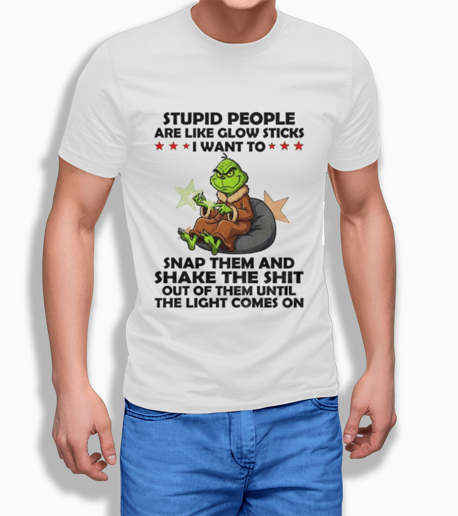 Stupid People Are Like Glow Sticks Grinch Christmas Snap Them Until The Light Comes On T-Shirt