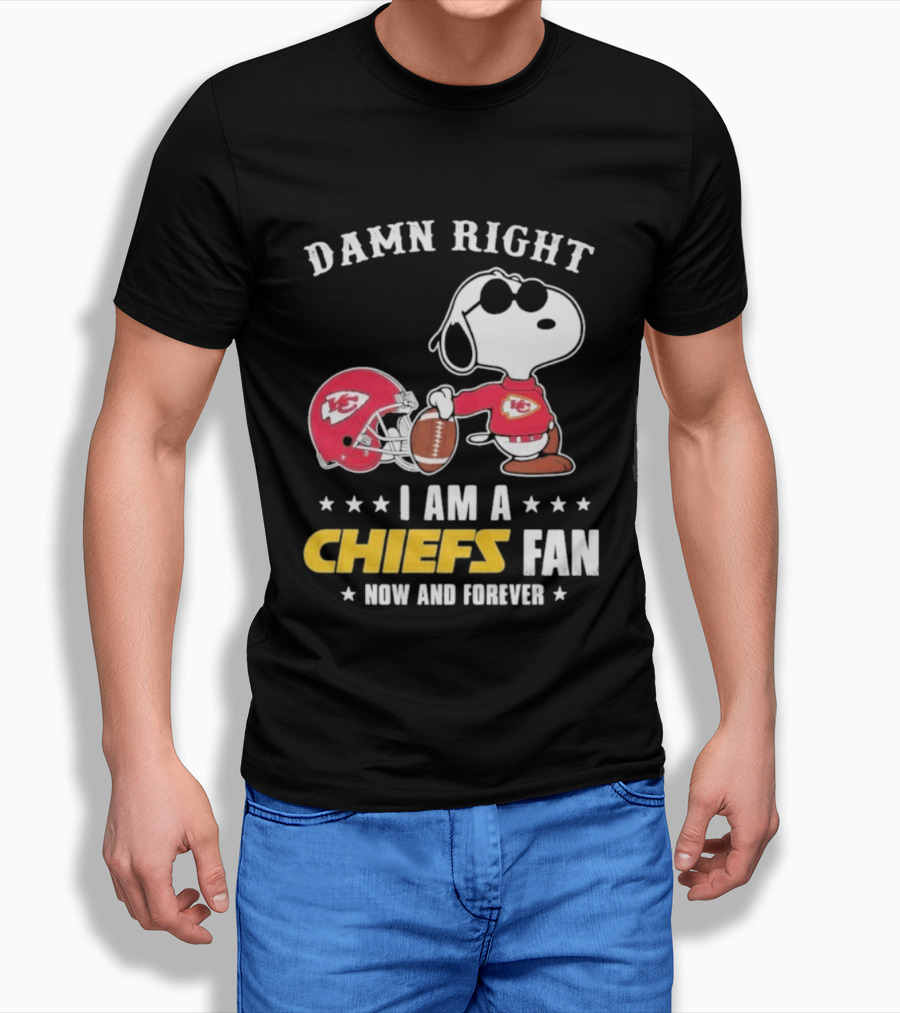 Damn Right I Am A Chiefs Fan Now And Forever Snoopy Kansas City Chiefs T-Shirt