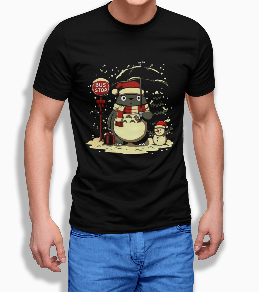 Totoro Snowman Winter Bus Stop Santa Hat T-Shirt