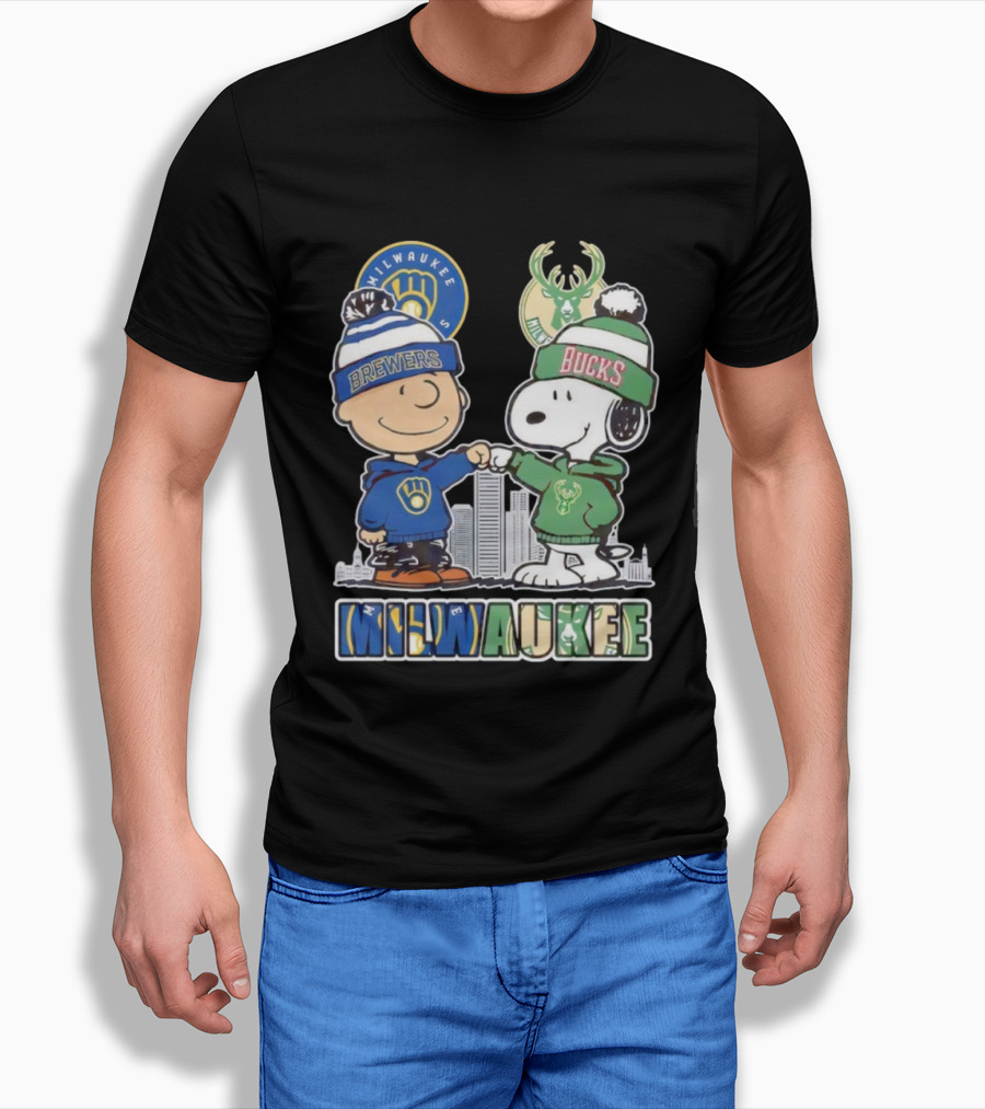 Charlie Brown Snoopy Milwaukee Brewers Bucks Fist Bump T-Shirt