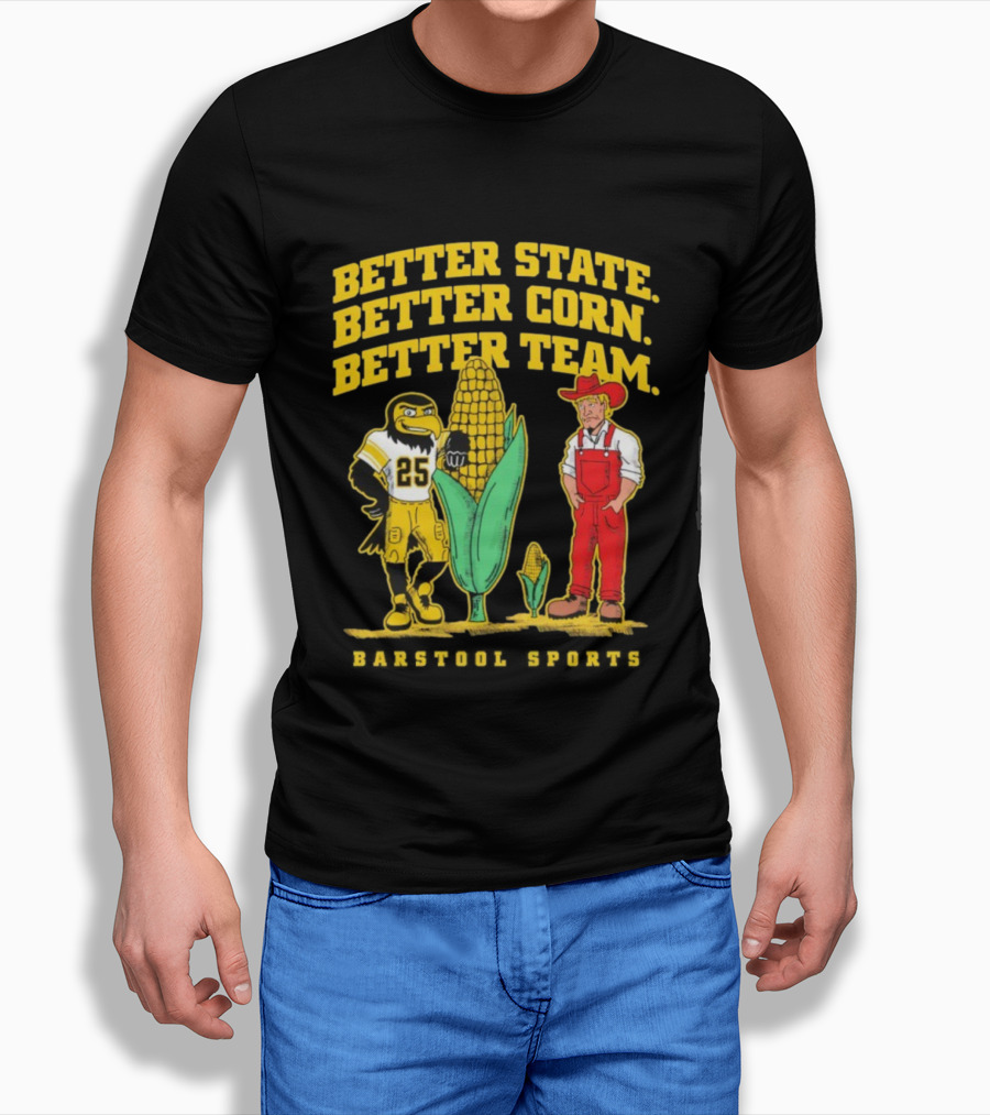 Better State Better Corn Better Team Iowa Hawkeyes Herky And Farmer T-Shirt