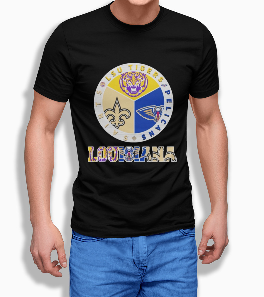 LSU Tigers New Orleans Saints Pelicans Louisiana Sports Team Collaboration T-Shirt