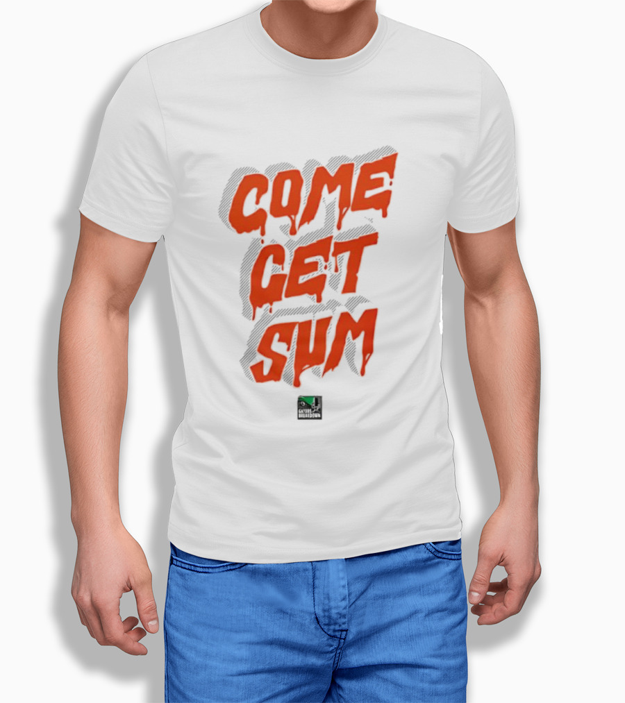 This T-Shirt features Come Get Sum Bold Orange Text Styling print and is constructed from 100% ring-spun cotton fabric with a weight of 4.19 oz/yd² (142 g/m²). The fabric is pre-shrunk during manufacturing, a process intended to minimize dimensional changes after washing according to standard care instructions. Designed with a regular fit for everyday use, it incorporates double-needle stitching at key seams. Please refer to the size chart for detailed measurements.