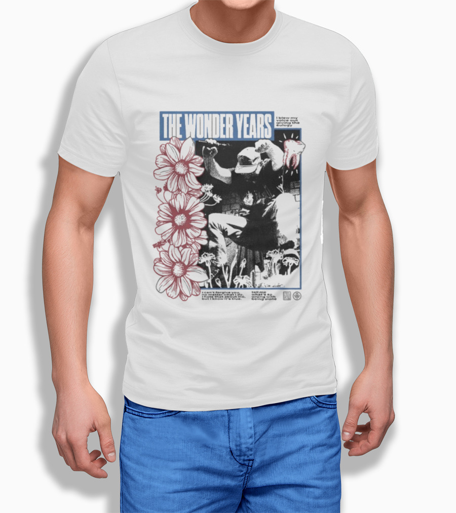 This T-Shirt features The Wonder Years Being Alone I Blew My Voice Out Giving The Eulogy Floral Graphic print and is constructed from 100% ring-spun cotton fabric with a weight of 4.19 oz/yd² (142 g/m²). The fabric is pre-shrunk during manufacturing, a process intended to minimize dimensional changes after washing according to standard care instructions. Designed with a regular fit for everyday use, it incorporates double-needle stitching at key seams. Please refer to the size chart for detailed measurements.