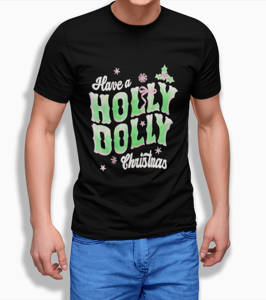Have A Holly Dolly Christmas Holiday Season Green Pink Decor T-Shirt