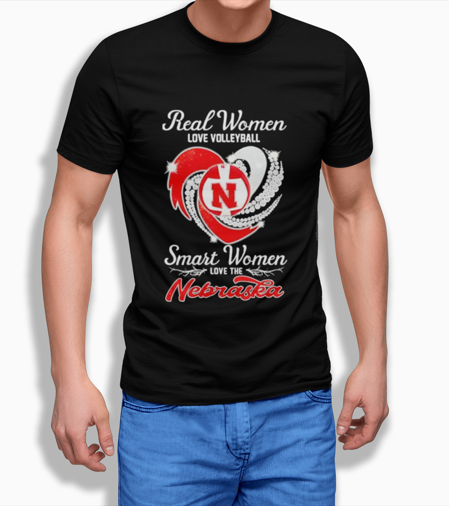Real Women Love Volleyball Smart Women Love The Nebraska N Heart T-Shirt