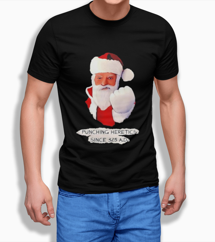 Punching Heretics Since 325 A.D. Santa Claus T-Shirt