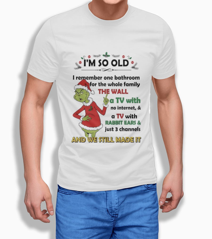 I'm So Old Grinch Santa Remembering One Bathroom Family Wall TV Rabbit Ears No Internet T-Shirt
