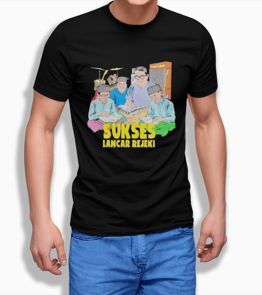 Sukses Lancar Rejeki Illustration With Reading Group And Musical Instruments T-Shirt