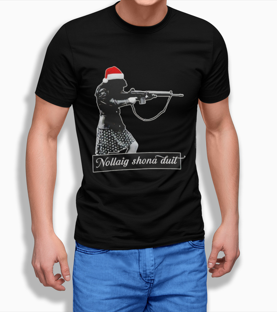 Nollaig Shona Duit Santa Christmas Santa Hat Woman Rifle T-Shirt