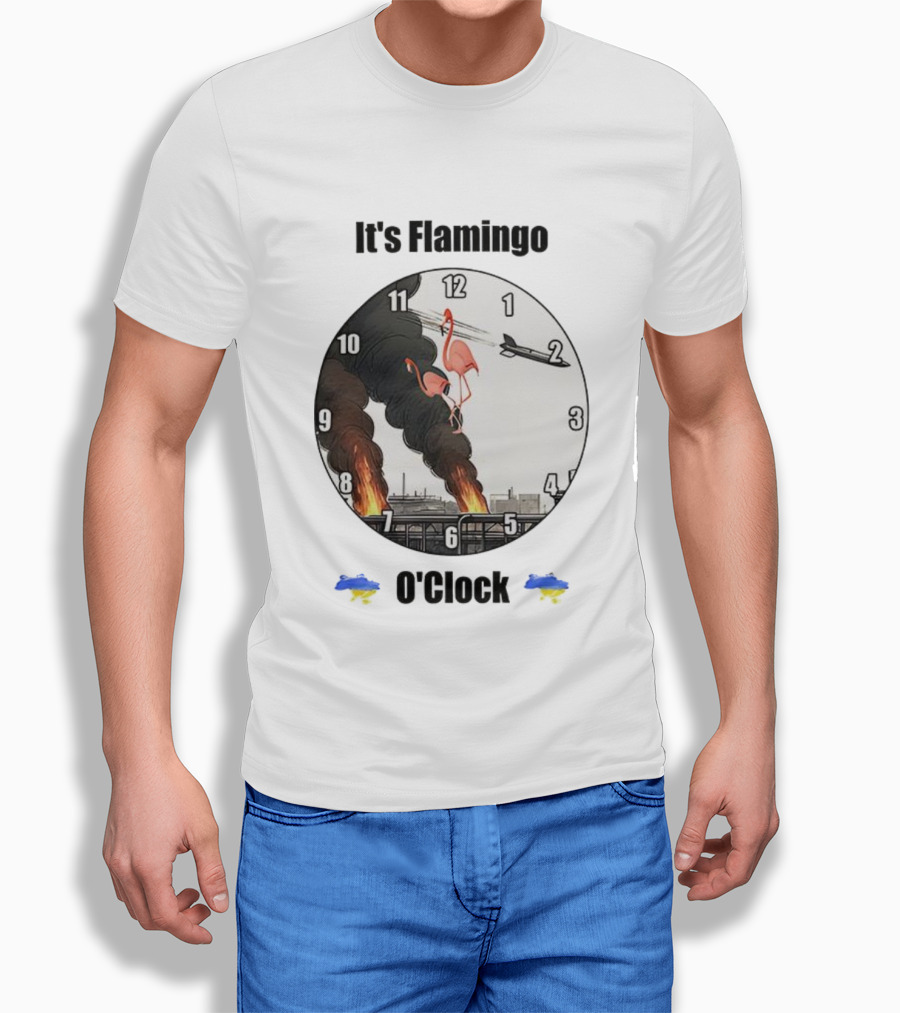 This T-Shirt features Flamingo O’clock Flamingos on face with Plane and Fire Imagery print and is constructed from 100% ring-spun cotton fabric with a weight of 4.19 oz/yd² (142 g/m²). The fabric is pre-shrunk during manufacturing, a process intended to minimize dimensional changes after washing according to standard care instructions. Designed with a regular fit for everyday use, it incorporates double-needle stitching at key seams. Please refer to the size chart for detailed measurements.