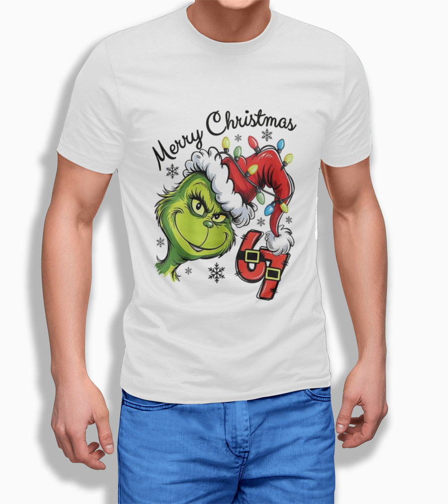 Grinch Merry Christmas 67 Festive Santa Hat Holiday Spirit T-Shirt