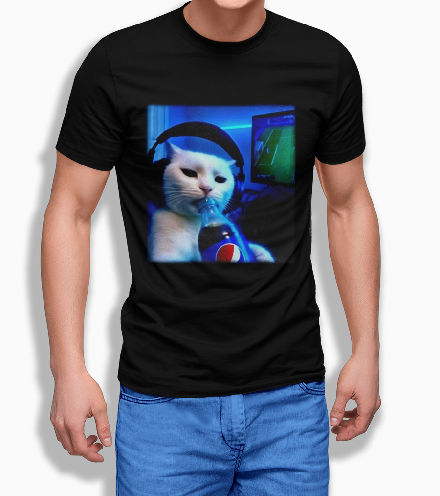 Cat Wearing Headphones Drinking Pepsi Gaming Meme T-Shirt