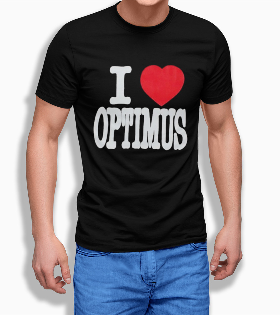 This T-Shirt features I Heart Optimus Bold Statement print and is constructed from 100% ring-spun cotton fabric with a weight of 4.19 oz/yd² (142 g/m²). The fabric is pre-shrunk during manufacturing, a process intended to minimize dimensional changes after washing according to standard care instructions. Designed with a regular fit for everyday use, it incorporates double-needle stitching at key seams. Please refer to the size chart for detailed measurements.