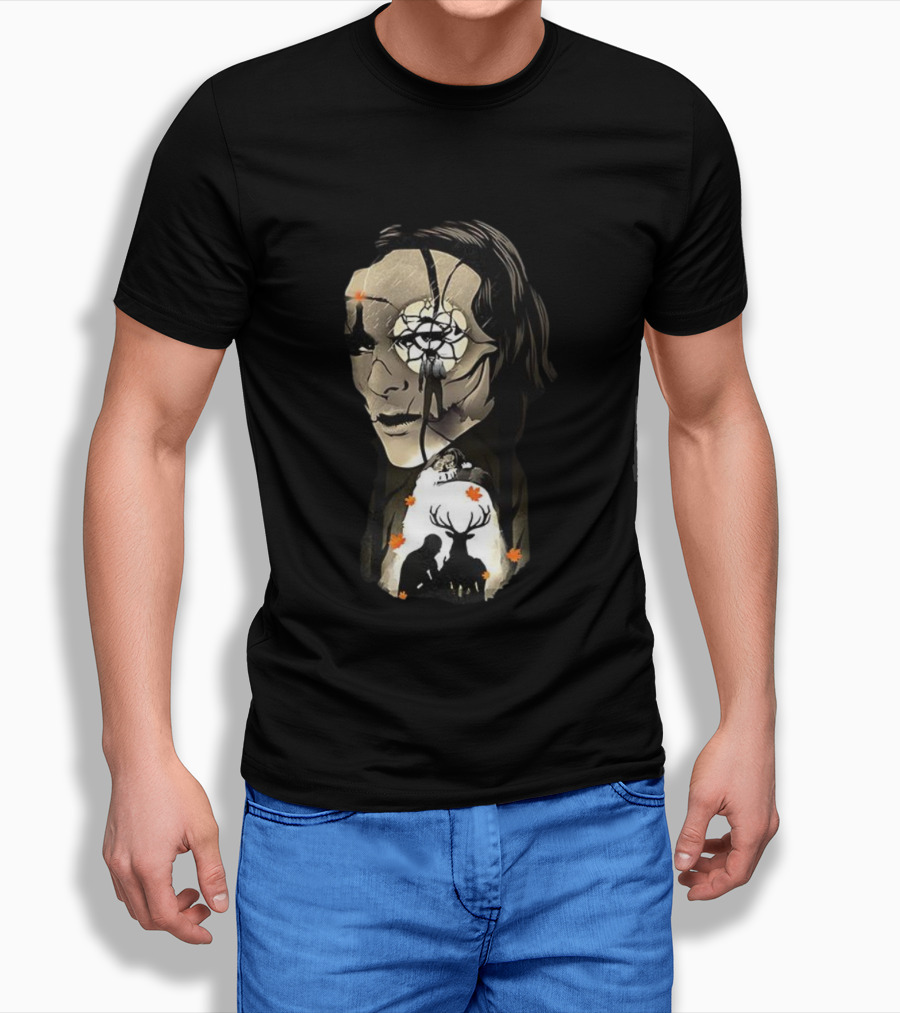 The Gentle Monster Face And Autumn Leaves With Silhouettes Of People And Deer T-Shirt