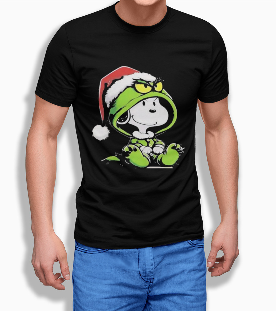 Snoopy Grinch Christmas Santa Hat Character Crossover T-Shirt