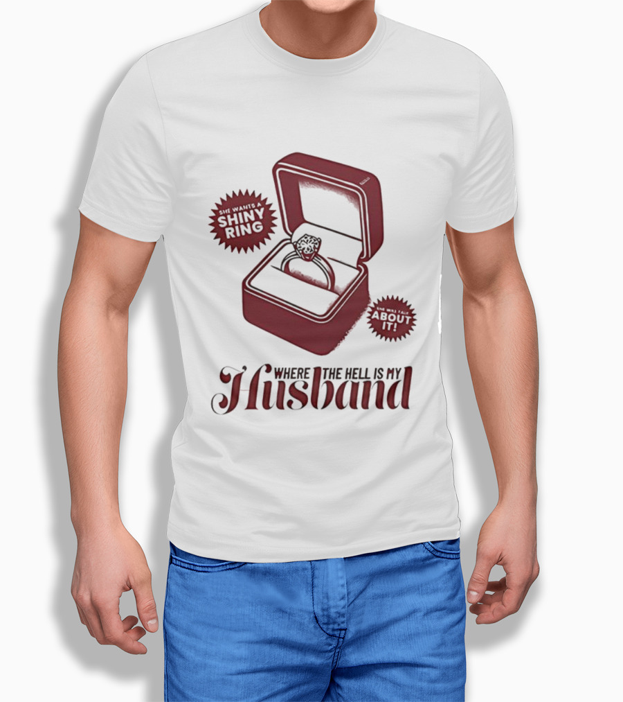 Where The Hell Is My Husband Funny Engagement Shiny Ring Box T-Shirt
