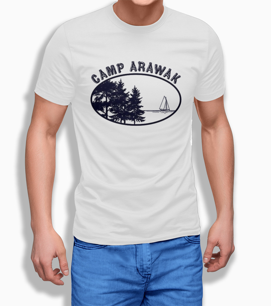 Camp Arawak Trees And Sailboat Scene T-Shirt