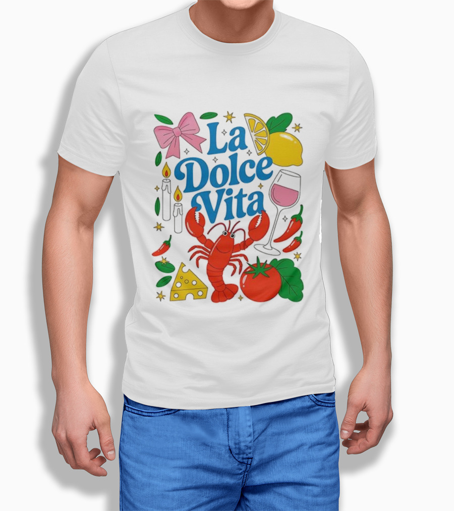J’aime La Dolce Vita Lobster Lemon Tomato Cheese Bow Candles Wine Peppers T-Shirt