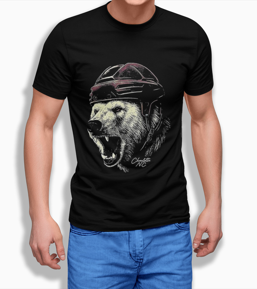 Charlotte Checkers Ice Hockey Furry Polar Mascot Helmet T-Shirt