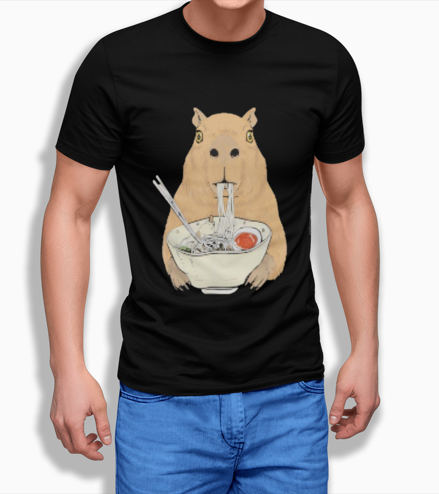 Capybara Eating Ramen Noodles Japanese Style T-Shirt