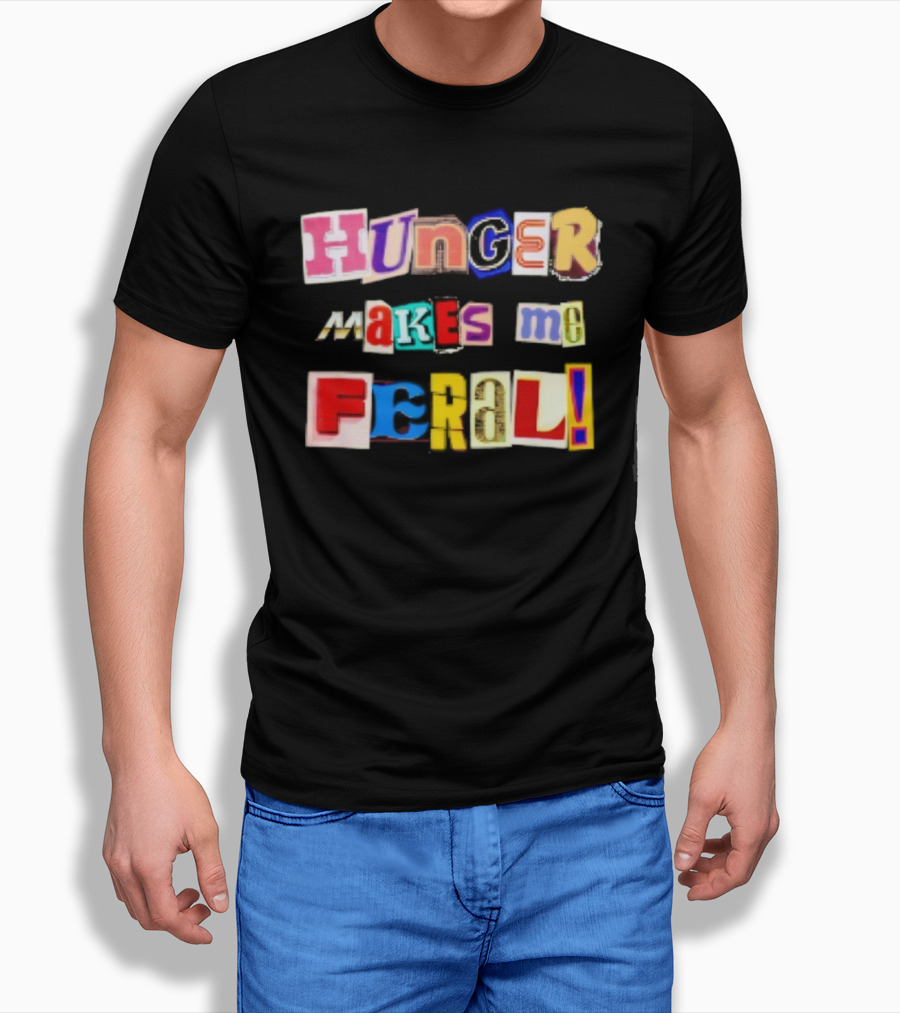 Hunger Makes Me Feral Dramatic Personality Phrase Vibrant Mixed Typography T-Shirt