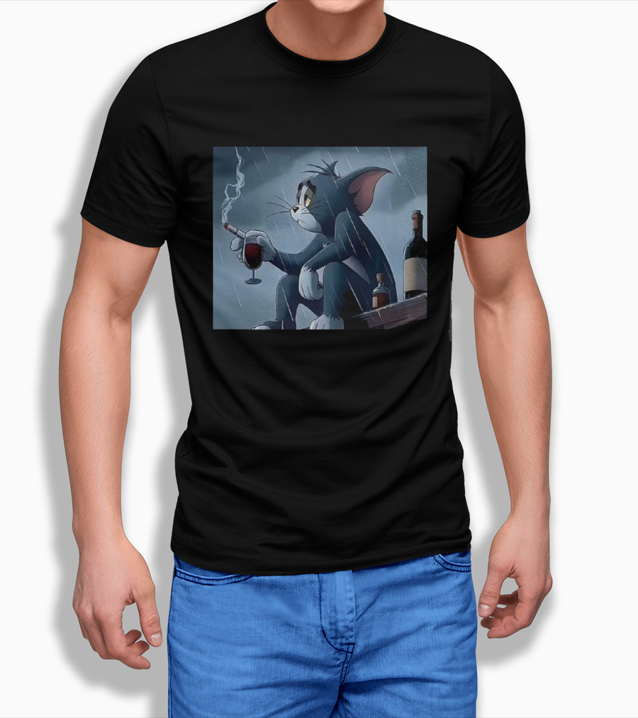 Tom Pensive And Sad Smoking In The Rain With Wine And Bottles T-Shirt
