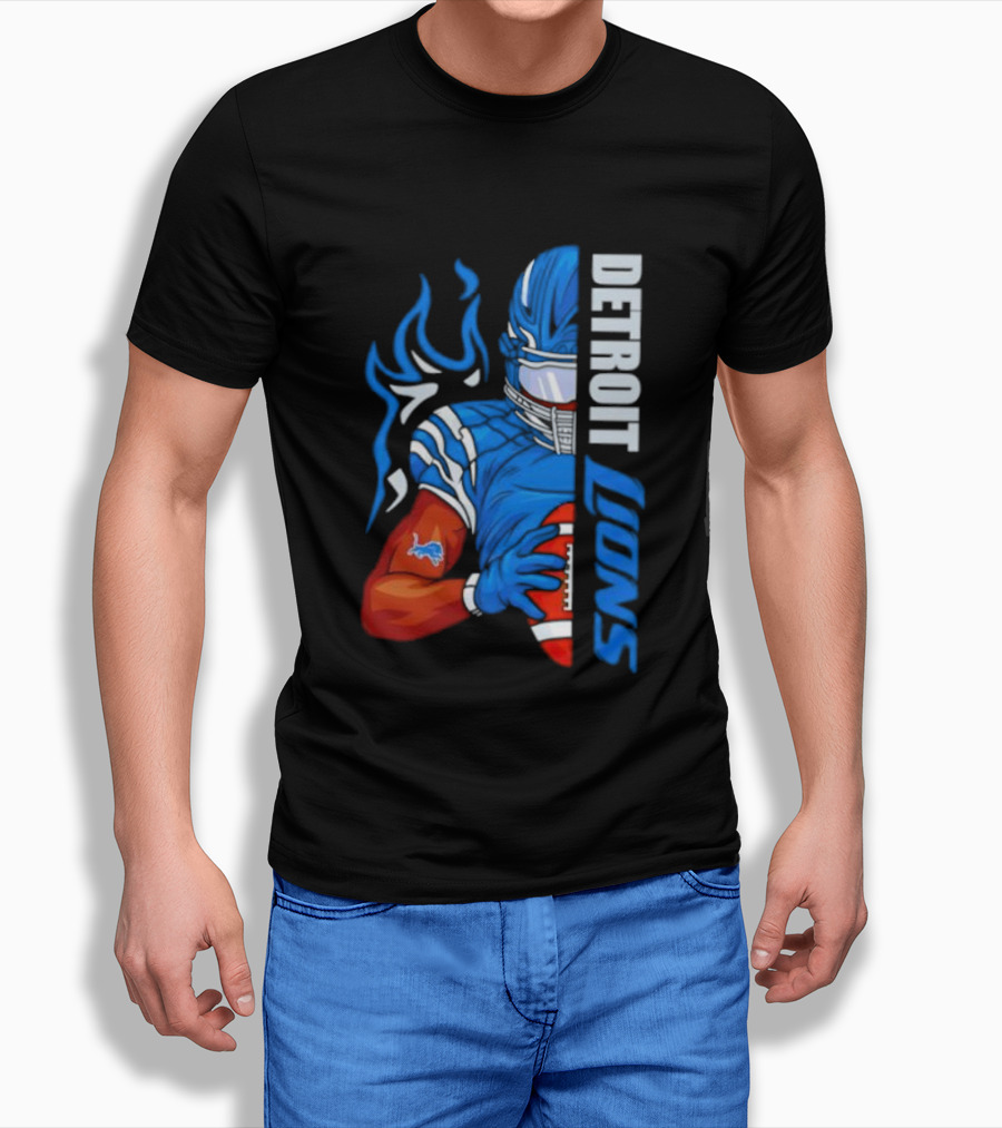 Detroit Lions Ball Football Player Stylish Half Blue T-Shirt