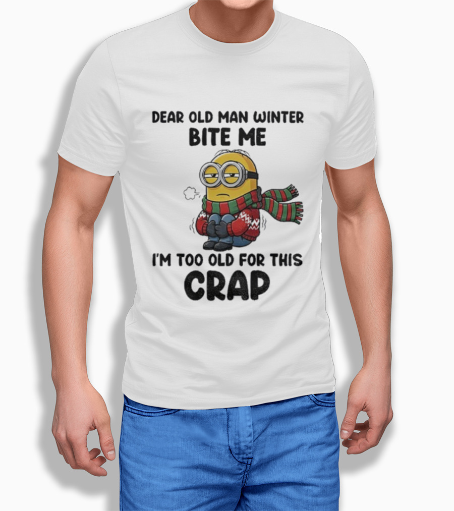 Dear Old Man Winter Bite Me Minion I'm Too Old For This Crap Christmas T-Shirt
