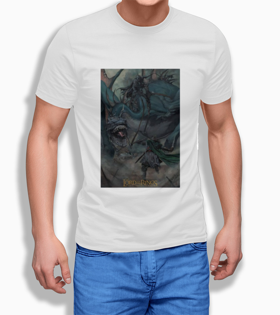 This T-Shirt features The Lord of the Rings The Return of the King Epic Battle Scene with Nazgûl and Fellbeast print and is constructed from 100% ring-spun cotton fabric with a weight of 4.19 oz/yd² (142 g/m²). The fabric is pre-shrunk during manufacturing, a process intended to minimize dimensional changes after washing according to standard care instructions. Designed with a regular fit for everyday use, it incorporates double-needle stitching at key seams. Please refer to the size chart for detailed measurements.
