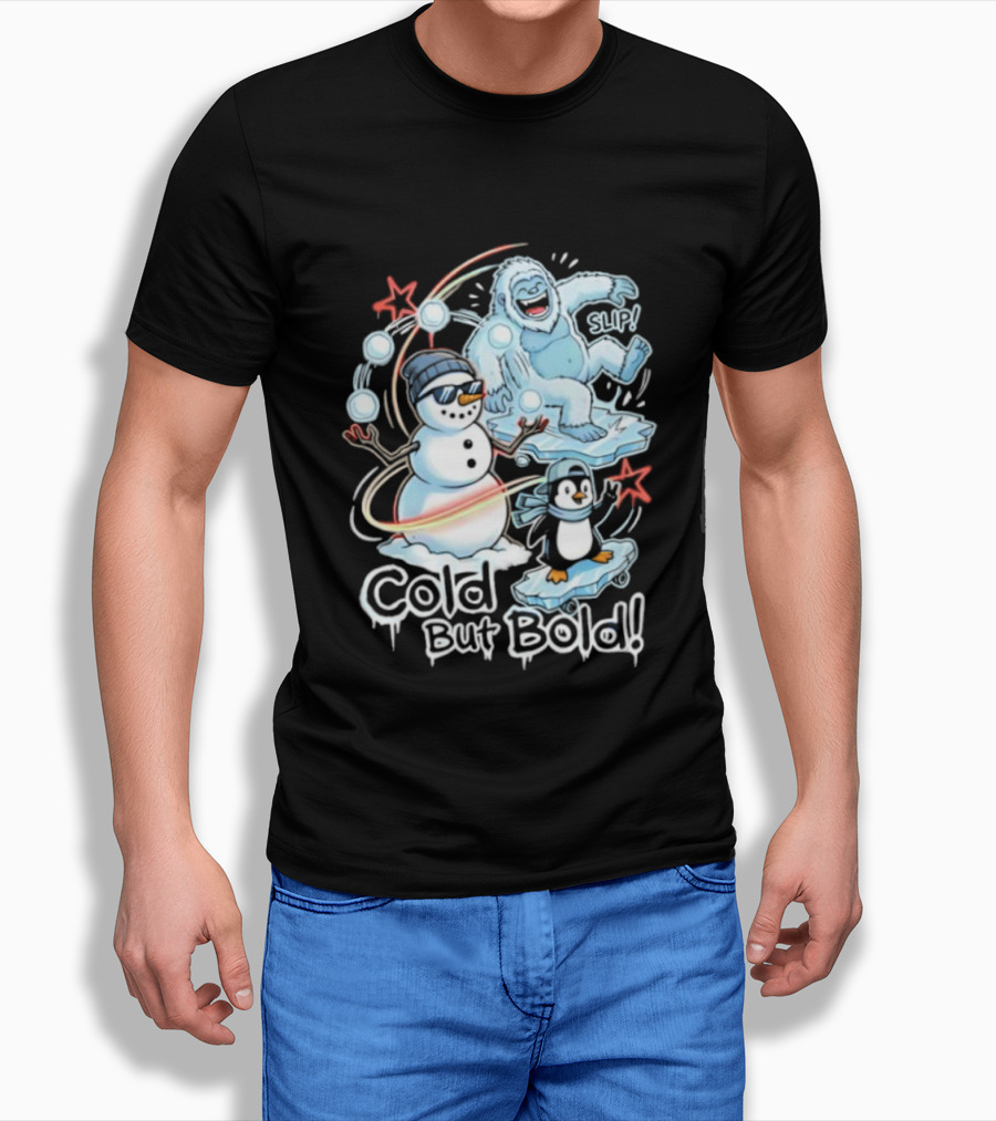 Cold But Bold Snowman Yeti Penguin Christmas Fun T-Shirt
