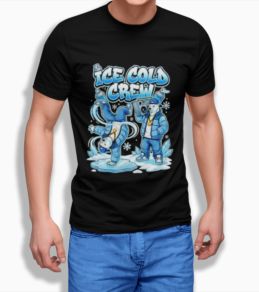Ice Cold Crew Hip Hop Polar Bear Breakdance Christmas Snowflakes T-Shirt