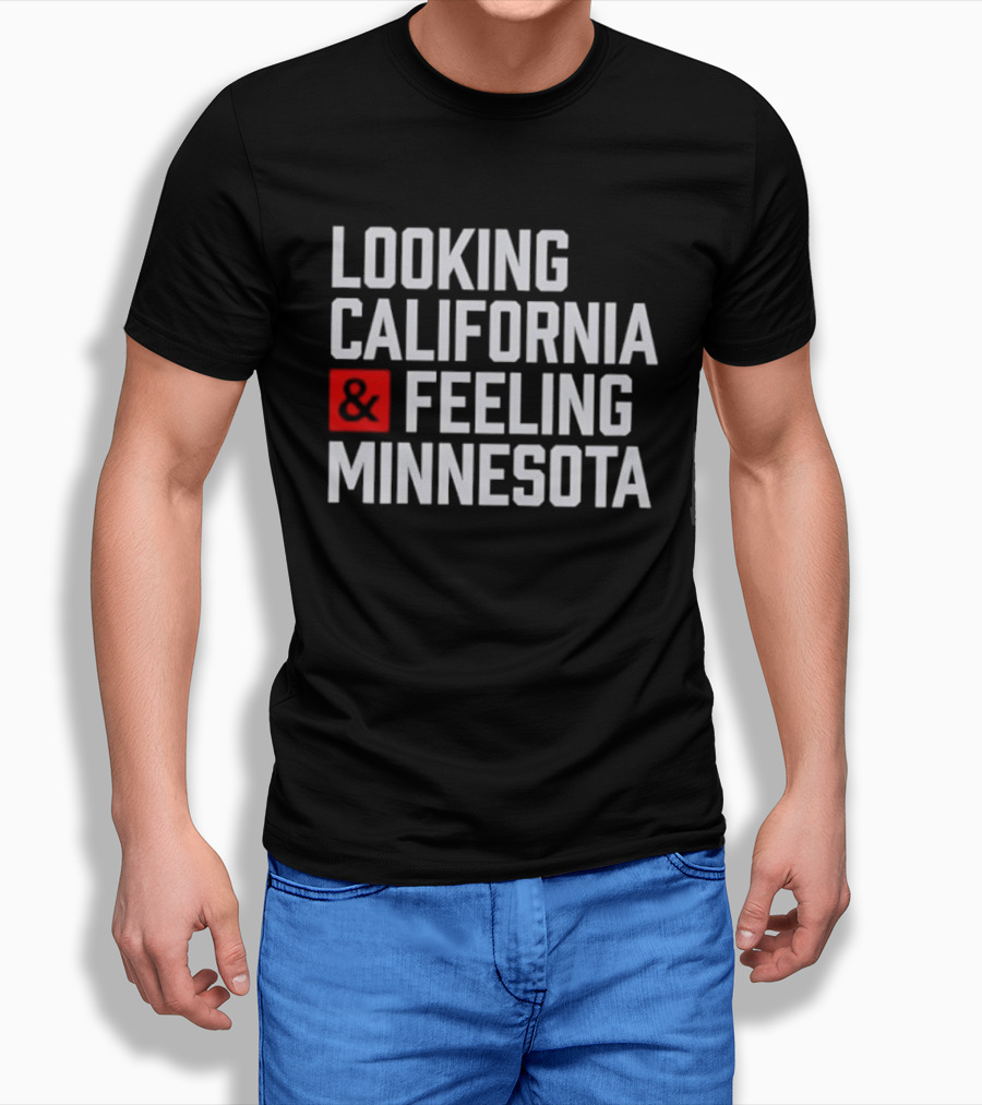 Looking California And Feeling Minnesota Text And Ampersand In Red Box T-Shirt