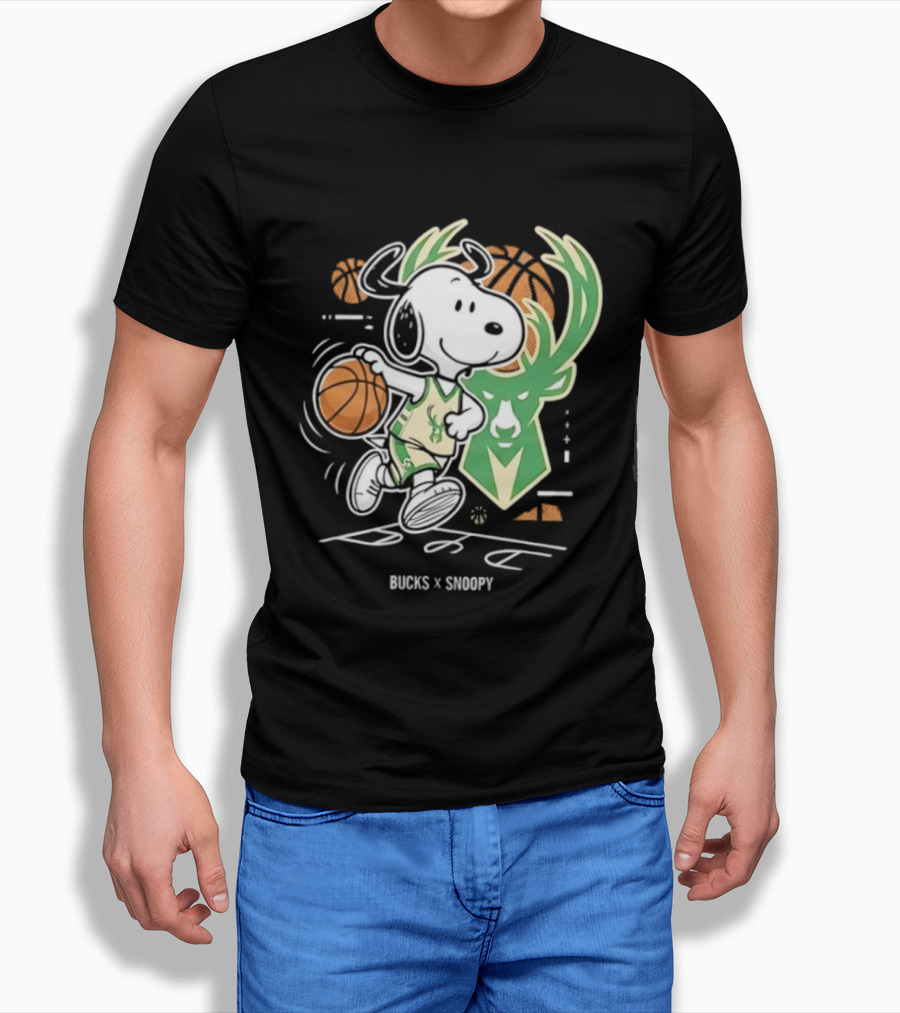 Milwaukee Bucks Snoopy Peanuts NBA Basketball Graphic T-Shirt