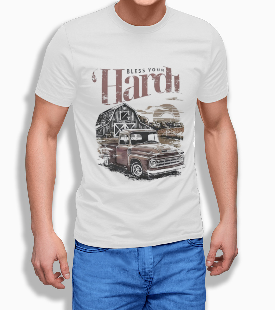 Bless Your Hardt Vintage Truck Barn Sunset Scene T-Shirt