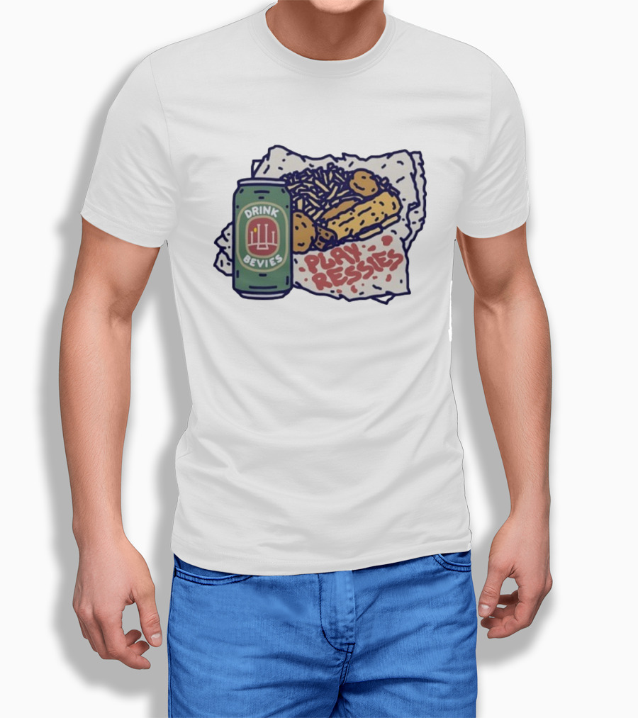 This T-Shirt features Drink Bevies Play Ressies Fast Food Can and Fries Illustration print and is constructed from 100% ring-spun cotton fabric with a weight of 4.19 oz/yd² (142 g/m²). The fabric is pre-shrunk during manufacturing, a process intended to minimize dimensional changes after washing according to standard care instructions. Designed with a regular fit for everyday use, it incorporates double-needle stitching at key seams. Please refer to the size chart for detailed measurements.