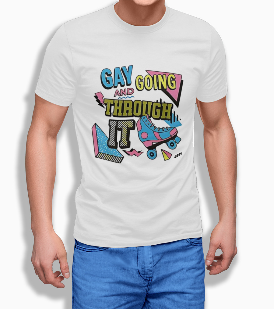Gay And Going Through It Retro 90s Roller Skate Aesthetic T-Shirt