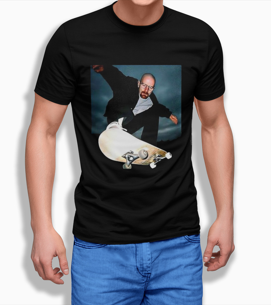 This T-Shirt features Walter White Skateboarding 90s Movie Meme Retro Nostalgia print and is constructed from 100% ring-spun cotton fabric with a weight of 4.19 oz/yd² (142 g/m²). The fabric is pre-shrunk during manufacturing, a process intended to minimize dimensional changes after washing according to standard care instructions. Designed with a regular fit for everyday use, it incorporates double-needle stitching at key seams. Please refer to the size chart for detailed measurements.